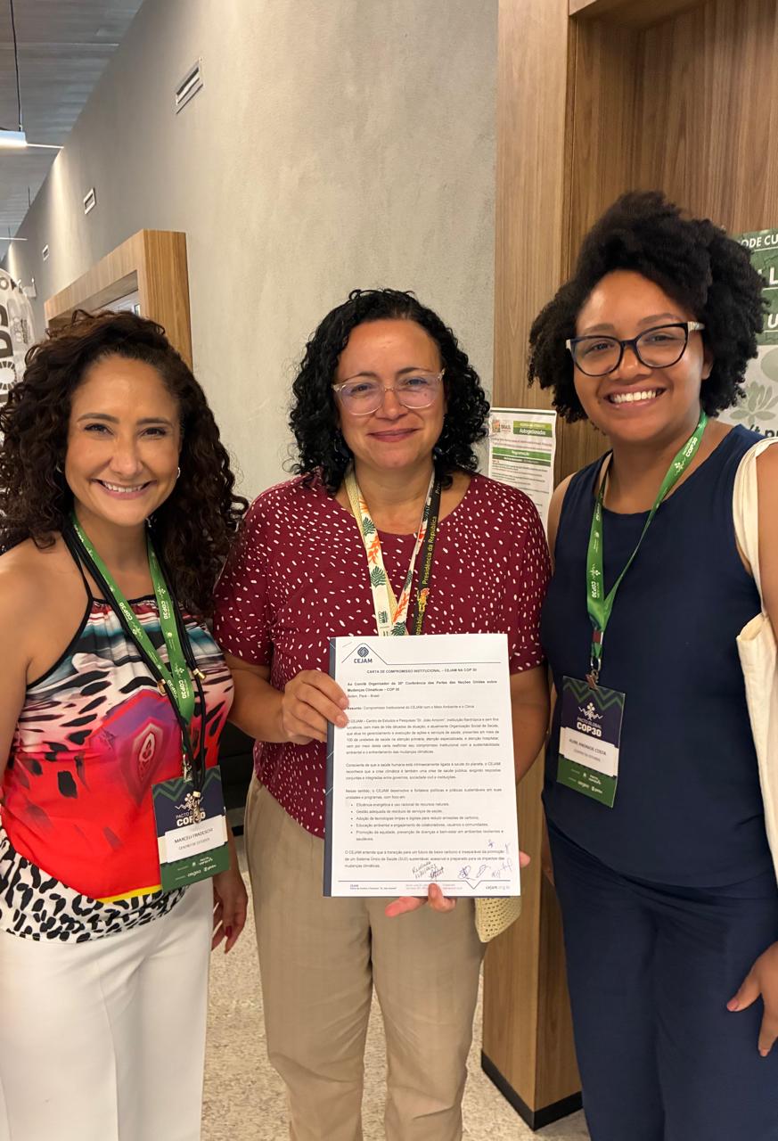 Alinhado às discussões sobre as mudanças climáticas e seu impacto na vida das pessoas, o CEJAM esteve presente na COP30, realizada entre os dias 10 e 21 de novembro, em Belém (PA). Durante a conferência, a instituição protocolou uma Carta de Compromisso com o Meio Ambiente e o Clima — reafirmando o entendimento de que saúde e o cuidado com o planeta caminham juntos.