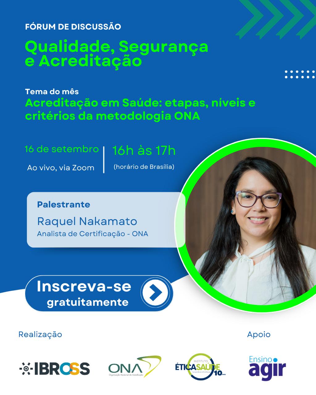 🎤 Palestrante: Raquel Nakamato, Analista de Certificação da ONA