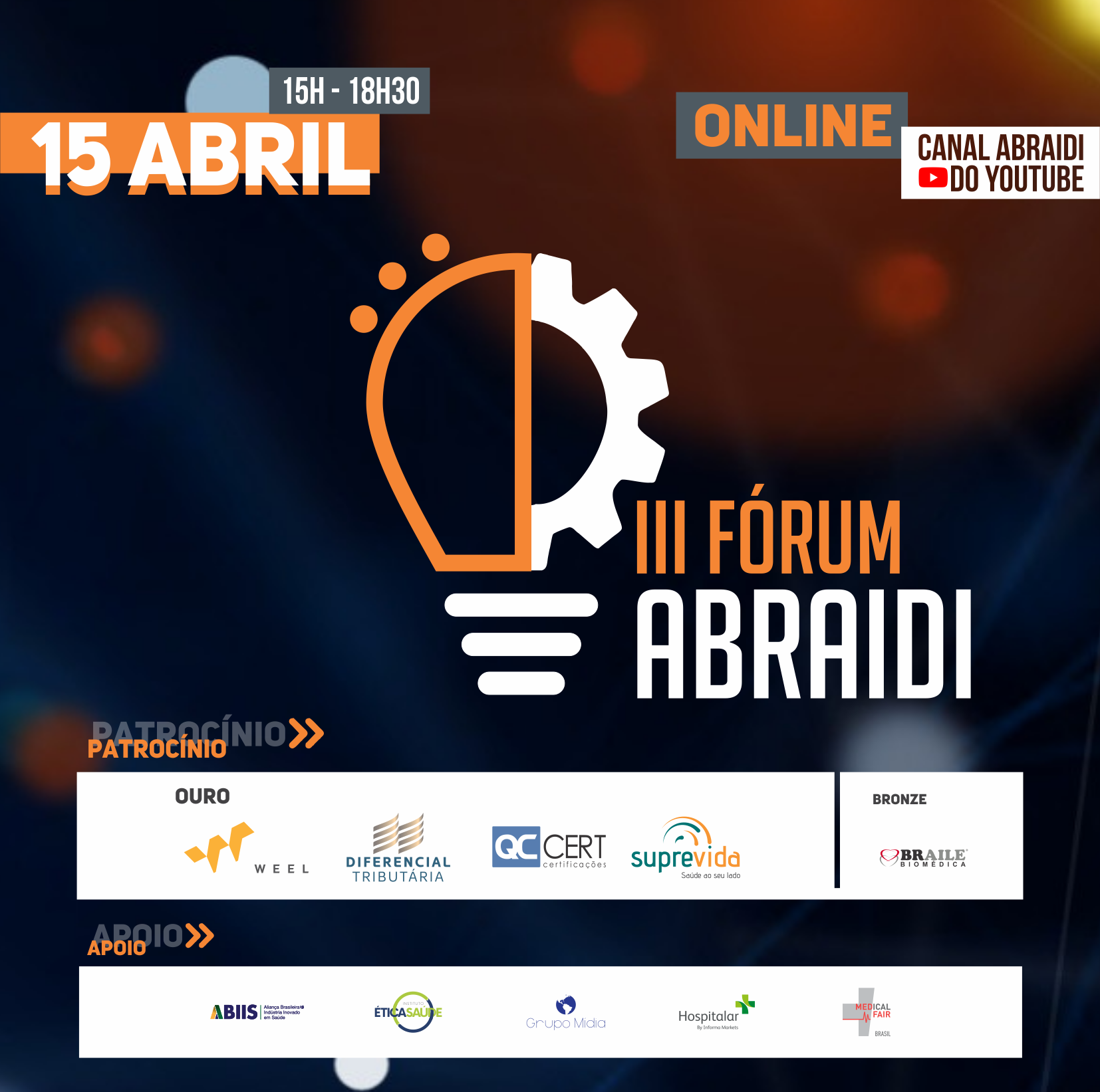 O evento encerra com uma análise do economista e filósofo Eduardo Gianetti da Fonseca que abordará as perspectivas econômicas e políticas para o Brasil. O Fórum da ABRAIDI tem o patrocínio da Weel, Diferencial Tributária, QC Cert – Certificações, Suprevida, Braile Biomédica e o apoio da Aliança da Indústria Inovadora em Saúde – ABIIS, do Instituo Ética Saúde – IES, do Grupo Mídia, da Hospitalar e da Medical Fair.