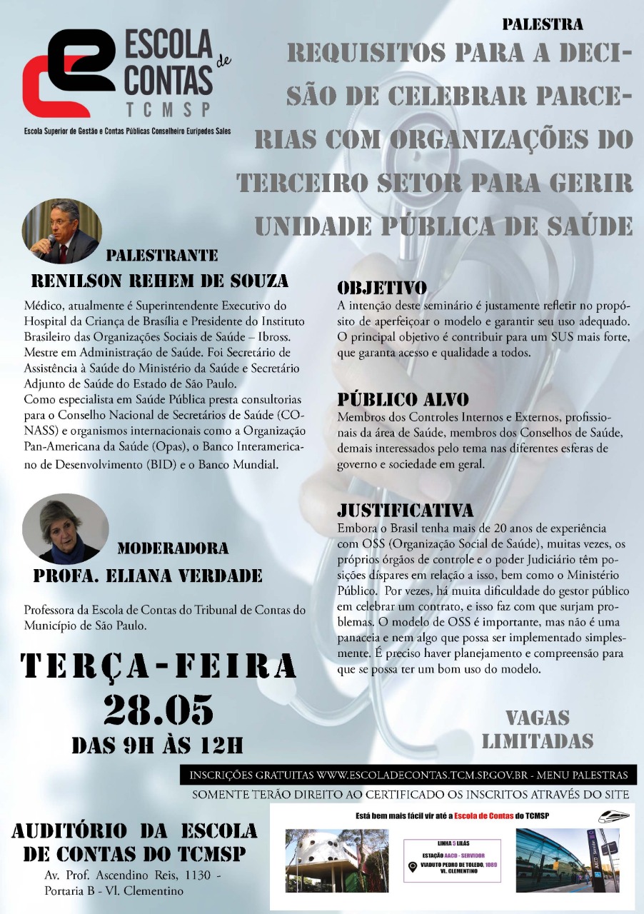 Palestra: Saúde – Requisitos para a decisão de celebrar parcerias com organizações do terceiro setor para gerir unidade pública de saúde